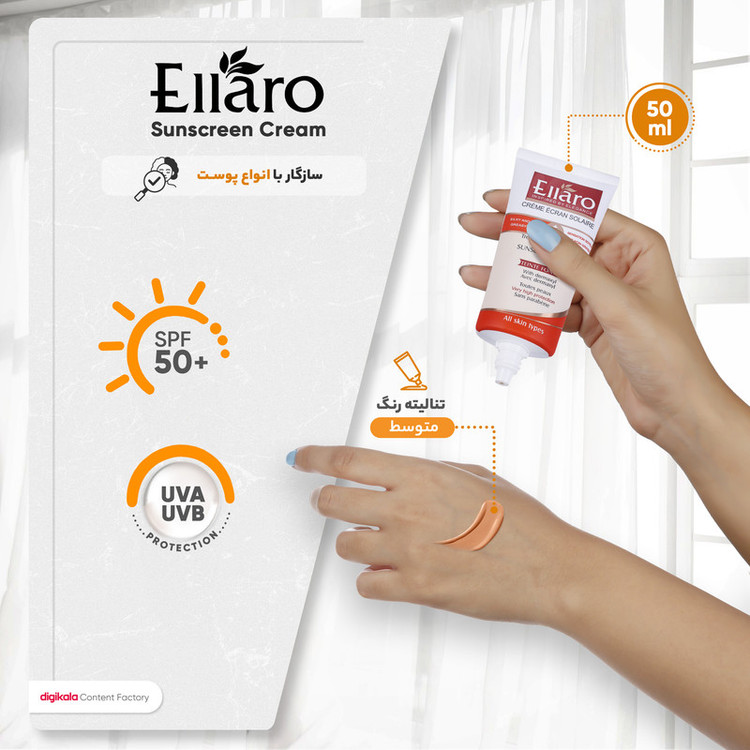 ویژگیهای ضدآفتاب : محافظت کننده در برابر اشعه UVA , محافظت کننده در برابر اشعه UVB , مرطوب کننده , فاقد پارابن