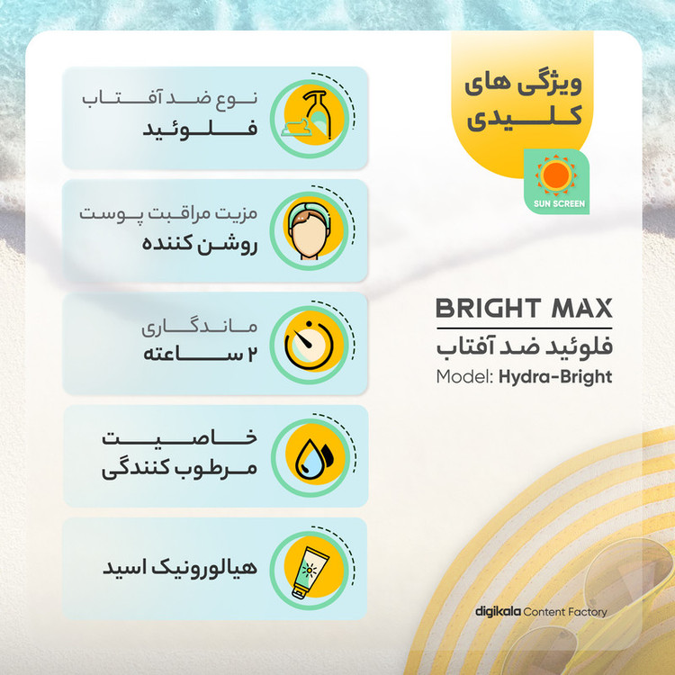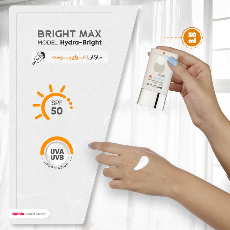 فلوئید ضدآفتاب بیرنگ برایت مکس SPF50 مدل هیدرابرایت مناسب انواع پوست، حجم 50 میلیلیتر