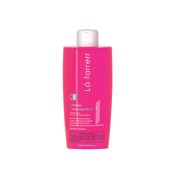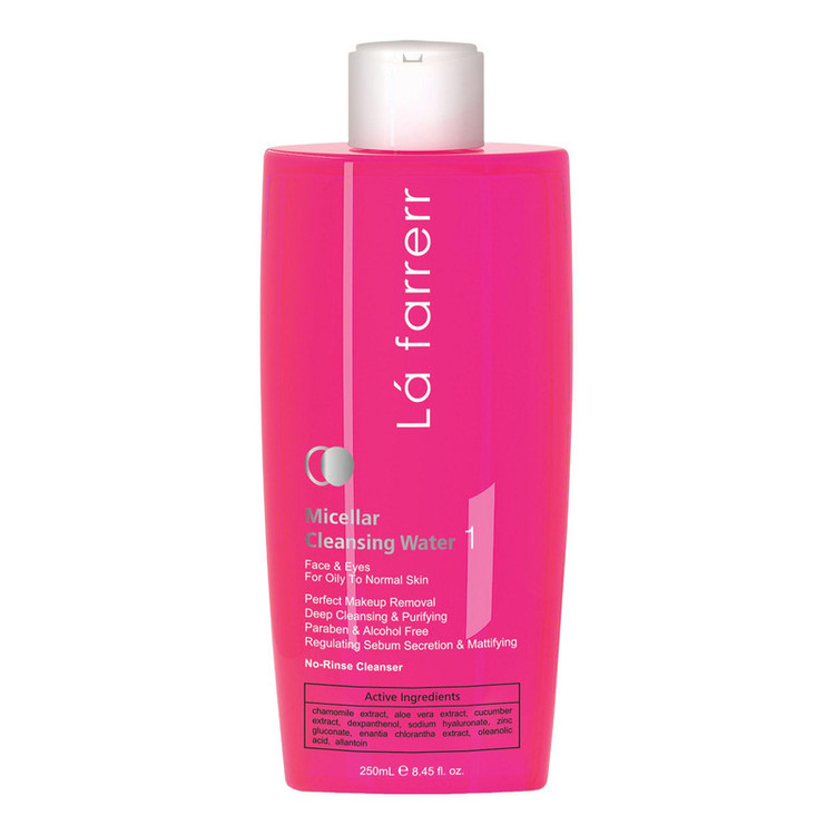محلول پاککننده آرایش و صورت لافارر مدل 01 مناسب پوستهای چرب و معمولی حجم 250 میلیلیتر
