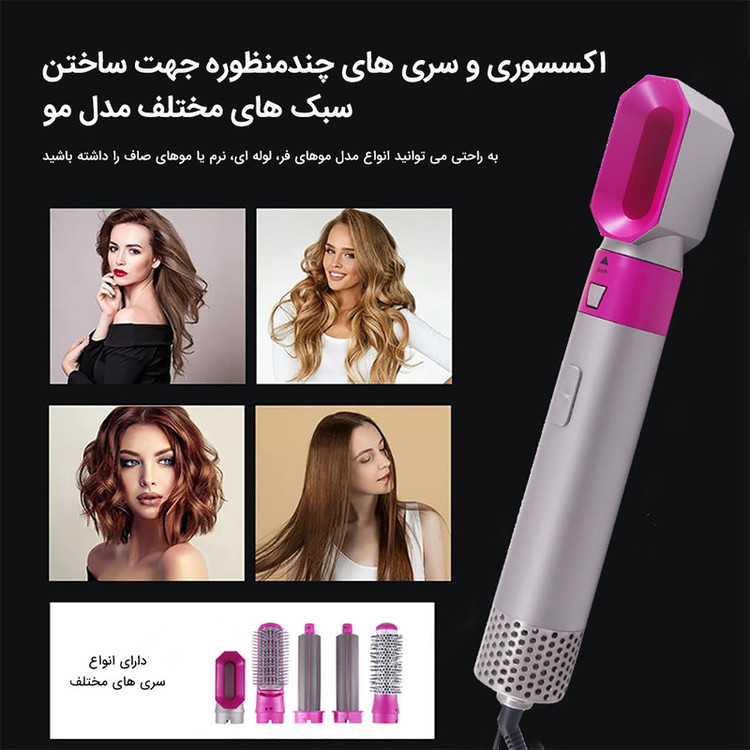 داشتن این سشوار که به شما امکان می دهد موهای خود را خشک کنید و در عین حال با وجود 5 سری مختلف مدل موی عالی ایجاد کنید. این سشوار با وجود 5 سری مختلف این امکان را به شما می دهد که مدل موی صاف، فر و مجعد ایجاد نمایید. همچنین یک شانه معمولی برای مدل موی معمولی در بسته وجود دارد. سری برس مارپیچ به شما کمک می کند تا فرهای زیبا ایجاد کنید، برس صاف به شما کمک می کند موهای وز را صاف کنید، برس گرد به شما کمک می کند مدل موی عالی ایجاد کنید. شما می توانید آن را به عنوان یک سشوار کلاسیک استفاده کنید. اندازه کوچک آن برای عکاسی حتی در سفر عالی است و می توان از آن در 3 دمای مختلف استفاده کرد.