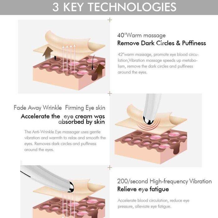 دستگاه sonic(سونیک)چشم تاچ بیوتی مدلTB-1583TOUCH BEAUTY SONIC EYE DEVICE TB1583محصولی از شرکت TOUCH BEAUTY(تاچ بیوتی)دستگاه سونیک چشم تاچ بیوتیچشم ها پنجره روح است، مهم است مراقبت هر روز از چشم ها.دستگاه sonic(سونیک)چشم تاچ بیوتی طراحی شده برای کاهش دایره ها و سیاهی زیرچشم. کمک به احیای پوست ظریف زیر چشم ها، افزایش وآرامش و طراوتپوست.یک وسیله زیبایی با فرکانس بالا میباشد که ترکیبی از ماساژور با حرارت ℃۴۰ و روش ارتعاش فرکانس بالا کمک به سفت کردن پوست و افزایش کشش آن است و ماساژ گرم به طور موثر محافل تاریک و پف کرده را کاهش می دهد وهمچنین ماساژهای ارتعاشی sonic باعث افزایش گردش خون می شود و چشم ها را آرام می کند.دستگاه سونیک چشم تاچ بیوتیسه اثر برای پوست بهتر✔ افزایش جذببهترین شریک چشم کرم چشم میباشد که با استفاده از حرارت ℃۴۰ دستگاه ،کرم های چشم مورد علاقه شمارا به طور موثر جذب پوست میکند تا منافذ را باز کند و اجازه می دهد که کرم ها بهتر وارد شوند. حداکثر راندمان ارتعاش با کارایی بالا محصولات مراقبت از پوست شما، قدرت جذب مواد مغذی سلول های پوست را تحریک می کند. پس از مدت زمان طولانی، ظاهر لکه ها را بهبود می بخشد و به شما یک پوست شاداب تر و سالم تر هدیه میدهد✔ دستگاه sonic(سونیک)چشم تاچ بیوتی باعث کاهش سیاهی زیر چشمدستگاه سونیک چشم تاچ بیوتیتحریک تولید کلاژن، و کمک به سفت کردن پوست و افزایش کشش آن است. ماساژ ملایم می تواند باعث کاهش سیاهی زیر چشم میشود.✔ دستگاه sonic(سونیک)چشم تاچ بیوتی خستگی چشم را خنثی کنید.ماساژ ملایم می تواند گردش خون را افزایش دهد، به طور چشمگیری خستگی چشم را کاهش می دهد، عضلات را تسکین می دهد، احساس تنش پوست را کاهش می دهد، قرمزی چشم ها، کاهش درد را کاهش می دهد. به خصوص برای افرادی که به مدت طولانی با کامپیوتر کار میکنند.استفاده از دستگاه sonic(سونیک)چشم تاچ بیوتی بسیار اسان میباشد،دارای سنسور هوشمند و نوآورانه میباشد. تنها انگشتان دست شما باید با بخش فلزی Smart Sensor در تماس قرار بگیرد، دستگاه sonic(سونیک)چشم تاچ بیوتی به طور خودکار تماس را به صورت الکترونیکی حس می کند و شروع بکار میکند.ماساژ چشم TOUCHBeauty تاچ بیوتی با تکنولوژی پیشرفته و طراحی منحصر به فرد و دارای ثبت اختراع واستانداردFDA میباشد.شماره ثبت اختراع: ((NO.201530153674.0))این دستگاه sonic(سونیک)چشم تاچ بیوتی دارای طراحی براق ، قابل حمل،به اندازه کافی کوچک ومناسب برای استفاده در سفر و هر مکان دلخواه شما.