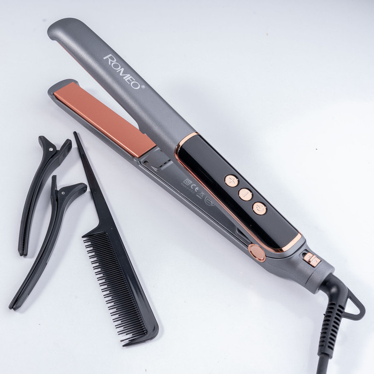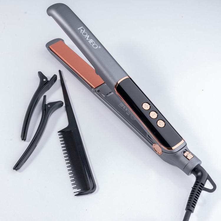 فرقی نمیکند که موهای شما کوتاه باشد یا بلند، ضخیم باشد و یا نازک. اگر دوست دارید که موهای صاف و خوش حالتی داشته باشید یکی از راه های رسیدن به آن استفاده از اتوی مو با کیفیت است. اتو موی جدید رومئو مدل RM-5252 با طراحی کاربرپسند و کیفیت بی نظیر در حفظ سلامت و ایجاد استایل های جذاب به موهایتان به شما کمک می کند. این اتو مو دارای توان مصرفی 45 وات است و با کنترل دمای دیجیتالی به شما امکان تنظیم دما تا 950 درجه فارنهایت را میدهد. این اتو مو مناسب برای انواع مو است و در عرض 30 ثانیه گرم میشود. همچنین، این اتو مو دارای قابلیت خاموشی خودکار بعد از 60 دقیقه است که از اتلاف انرژی و خطر سوختگی جلوگیری میکند. صفحه اتو مو باریک و از جنس تیتانیوم با پوشش سرامیکی است و با گرمایش سریع و پخش حرارت یکنواخت هنگام استایل کردن مو، نتیجهای زیبا و حرفهای را به شما میدهد. همچنین این اتو مو دارای سیم گردان 2 متری با قابلیت چرخش 360 درجه است که از گره خوردن و پیچ خوردن سیم جلوگیری میکند و به شما امکان حرکت راحتتر را میدهد. علاوه بر این دارای امکان قفل کردن صفحه می باشد. برای کاربری بهتر اتو مو به همراه آن دو عدد گیره مو و یک عدد شانه نیز ارائه شده است. به طور کلی اتو مو رومئو مدل RM-5252یک انتخاب عالی برای هر کسی است که میخواهد موهایش را به راحتی و با کیفیت بالا استایل کند.