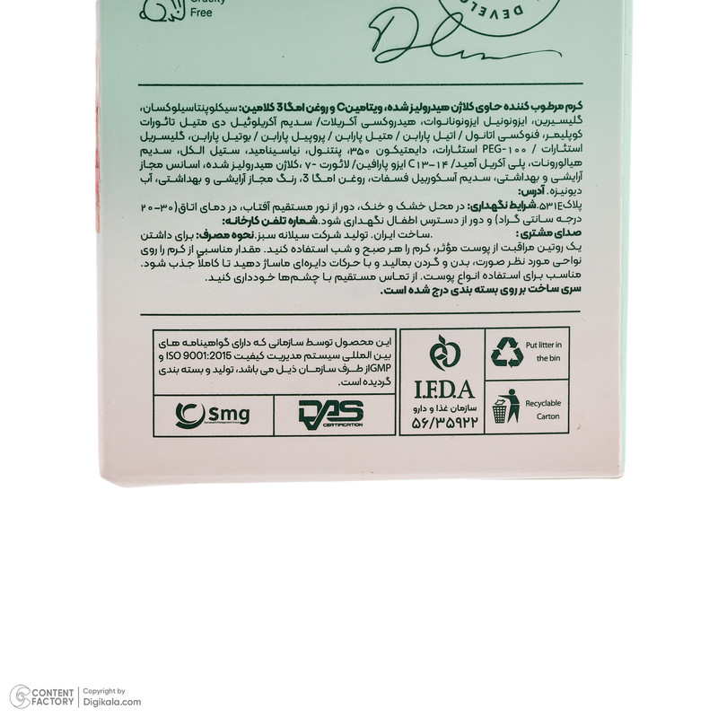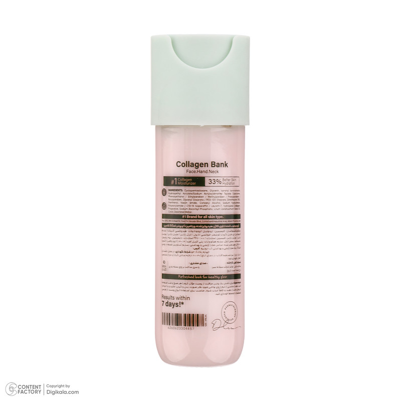 کرم مرطوبکننده صورت و گردن کلامین مدل Collagen Bank ترکیبی پیشرفته از کلاژن هیدرولیزشده، ویتامین C و امگا ۳ دارد که با هدف آبرسانی عمیق، تغذیه پوست و کمک به جوانسازی آن طراحی شده است. این کرم با نفوذ به لایههای سطحی پوست، رطوبت مورد نیاز را تأمین کرده و به بازسازی و تقویت بافت پوست کمک میکند تا ظاهری شادابتر و سالمتر ایجاد شود. استفاده مداوم از این محصول به کاهش نشانههای پیری کمک کرده و لطافت و شفافیت طبیعی پوست را تقویت میکند. کلاژن بانک کلامین با آبرسانی طولانیمدت، به حفظ رطوبت پوست تا ۲۴ ساعت کمک میکند و میتواند سطح آبرسانی پوست را بهطور چشمگیری افزایش دهد. این کرم در کاهش ظاهر چینوچروک و خطوط ظریف مؤثر است، به بهبود خطوط خنده کمک میکند و با افزایش خاصیت کشسانی، پوست را سفتتر و یکدستتر نشان میدهد. ترکیب کلاژن، ویتامین C و امگا ۳ مواد مغذی ضروری را در اختیار پوست قرار میدهد و برای انواع پوست، بهویژه پوست خشک و کمآب، مناسب است. فرمولاسیون این محصول با الهام از استانداردهای سوئیسی طراحی شده، فاقد پارابن است و تست حیوانی ندارد. کرم کلاژن بانک کلامین برای استفاده روی صورت، گردن و دست قابل استفاده است و حس طراوت و تازگی ملایمی روی پوست ایجاد میکند. با مصرف منظم، پوست عمیقاً آبرسانی و تغذیه میشود، بافت آن یکنواختتر و درخشندگی طبیعی آن بیشتر میشود و ظاهر جوانتر و سالمتری پیدا میکند.